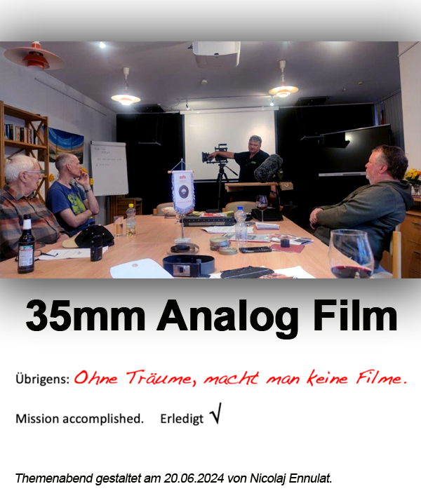 Denn, wie Klaus zu Sonja sagt: „In diesem Format wurde unsere Zivilisation der letzten 100 Jahren dokumentiert und deshalb musste es einmal im Leben ein 35er Film sein“, denn davon hat der Autor seit 8mm Zeiten geträumt.